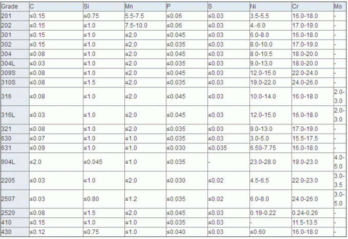 2، ترکیب شیمیایی در مورد نوار فولادی ضد زنگ